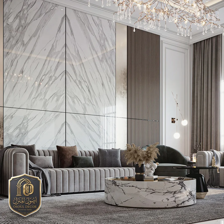 احصل على فخامة الرخام الطبيعي لمجالسك بتكلفة ذكية. نوفر ألواح بديل رخام (فرز أول) مرنة لا تتشقق مع البرودة، ويتم تركيبها بصمت ونظافة تامة فوق جدرانك الحالية لتعطي لمعاناً يعكس إضاءة المكان، بديل رخام للجدران أو الأرضيات بأنسب سعر.